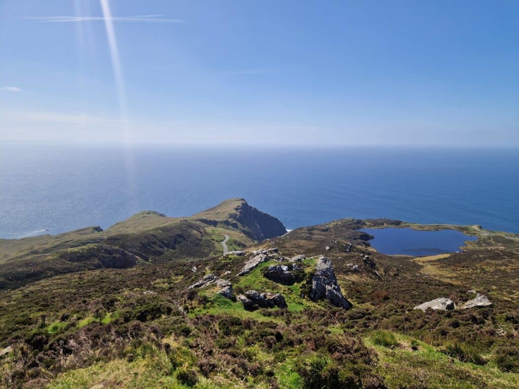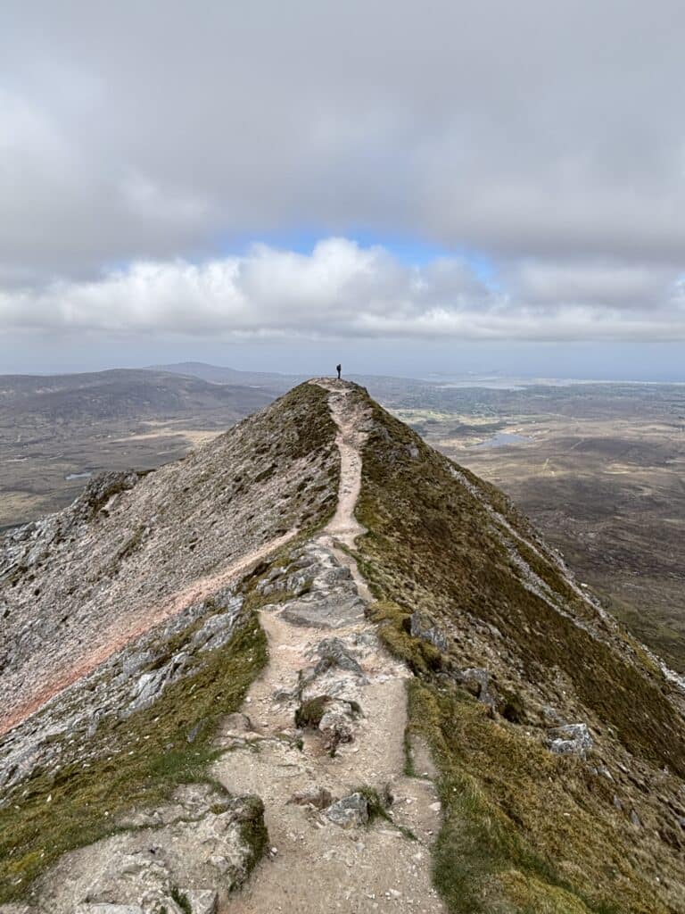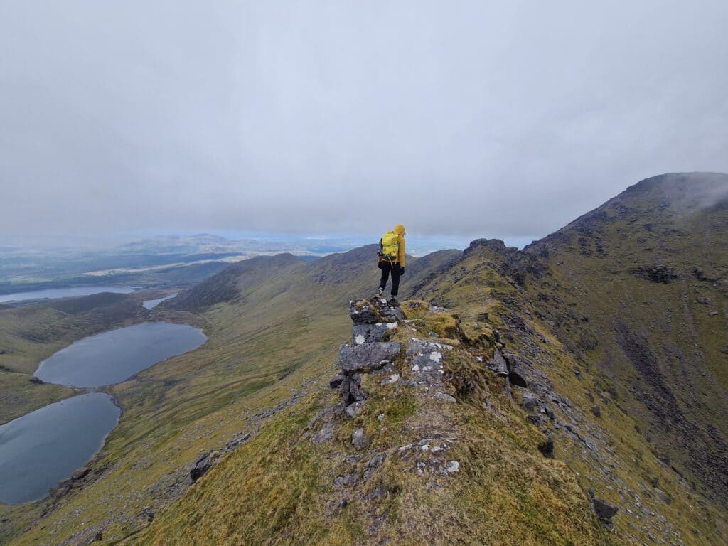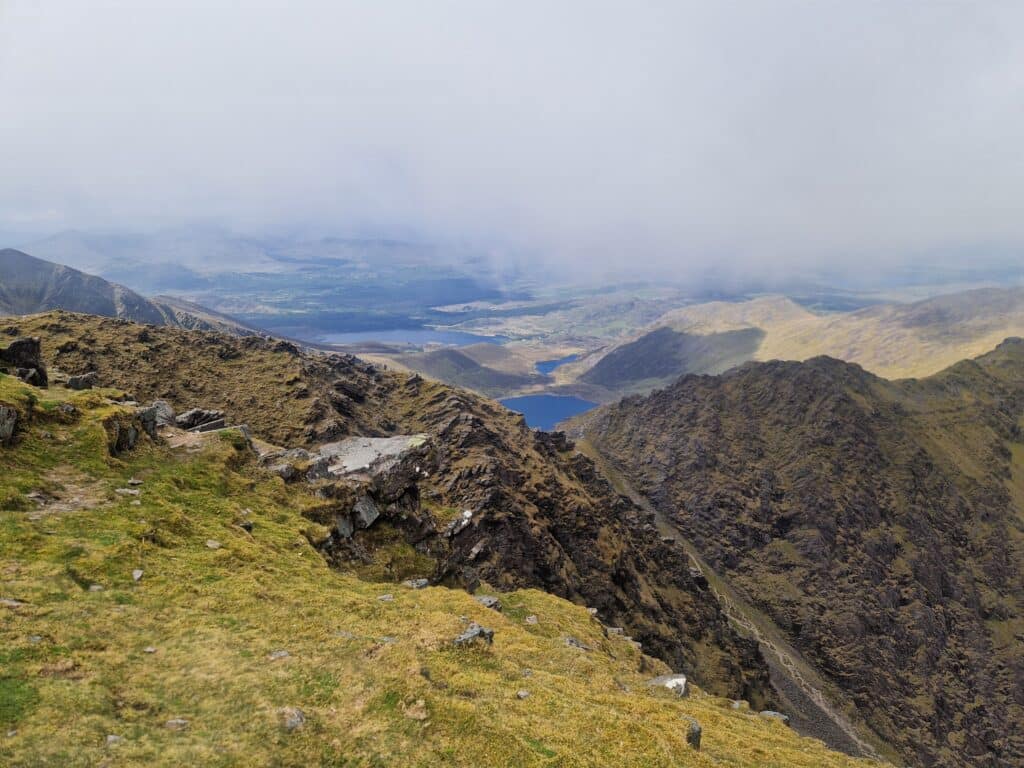 Not being particularly fond of the crowds, we decided to visit Ireland’s second-highest peak nearby—Beenkeragh (1,010m). A narrow and beautiful rocky ridge leads to it, which for me was the highlight of the entire hike. To our surprise, we didn’t meet a single person on Beenkeragh. For those looking for interesting, less-crowded routes, I highly recommend adding this peak to your list.